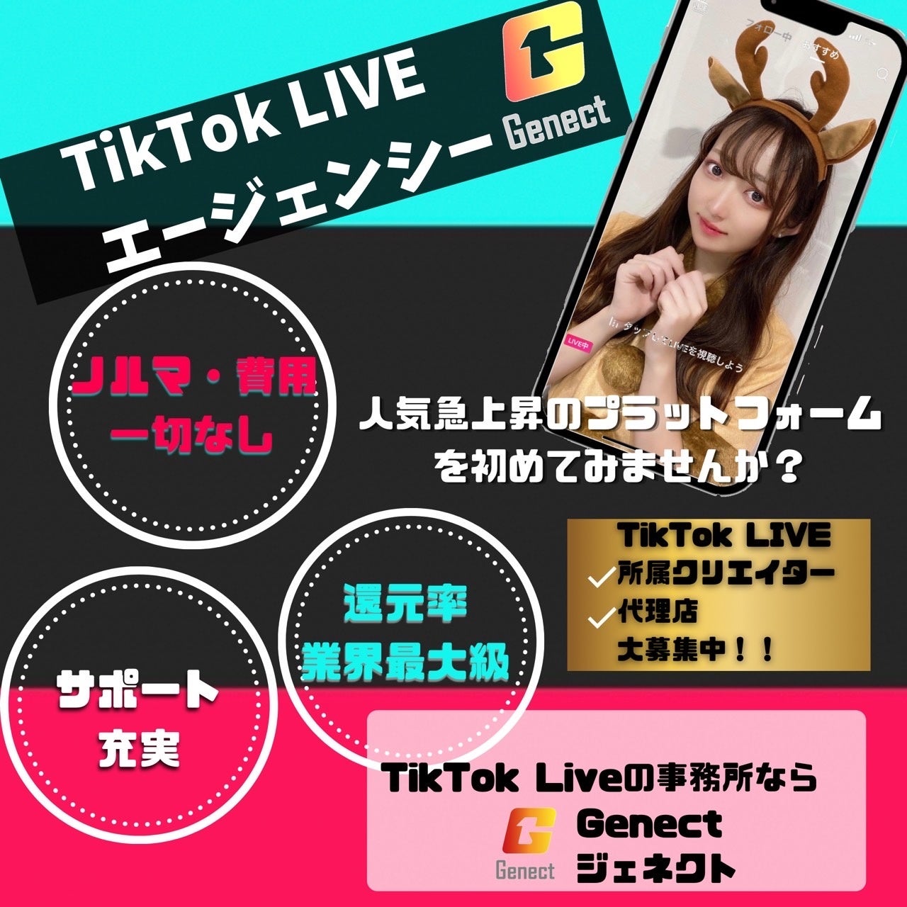 株式会社GenectBoxがマネージメントするライバー事務所【ジェネクト】(東京都渋谷区 事務所共同代表:長坂基史 阿部郁朗 以下ジェネクト)は、所属ライバー数は1000名を突破し、TikTok、Pococha、BIGOLIVE、Uplive、ミクチャ、every.liveでのライバーマネジメントを展開。