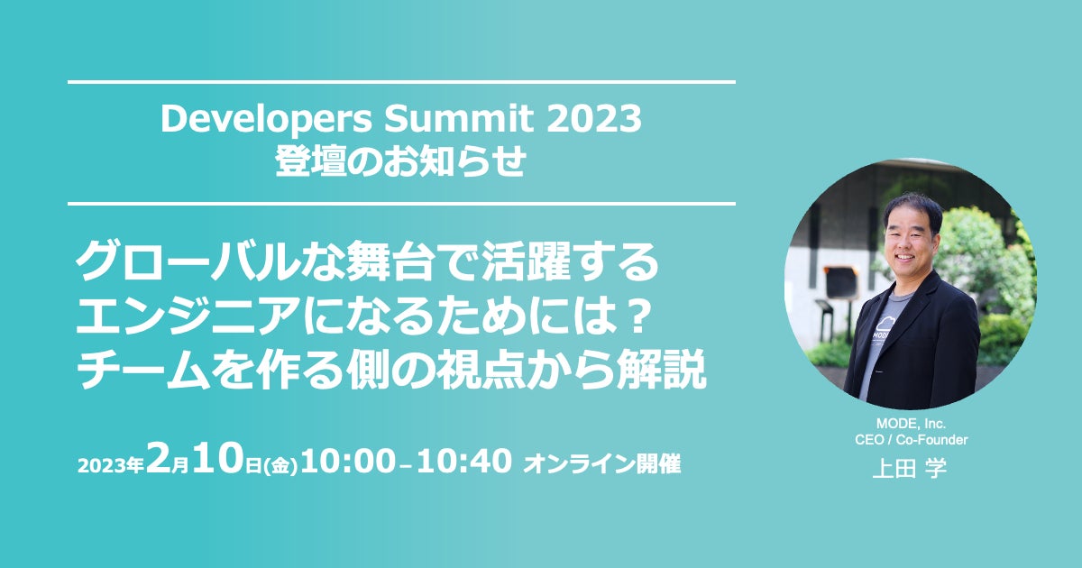 講演タイトル:「グローバルな舞台で活躍するエンジニアになるためには?チームを作る側の視点から解説」