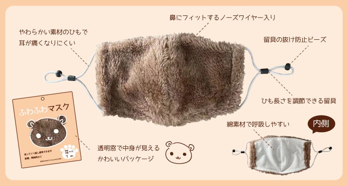 ■耳ひもは柔らかい素材でできており、耳が痛くなりにくくなっています。