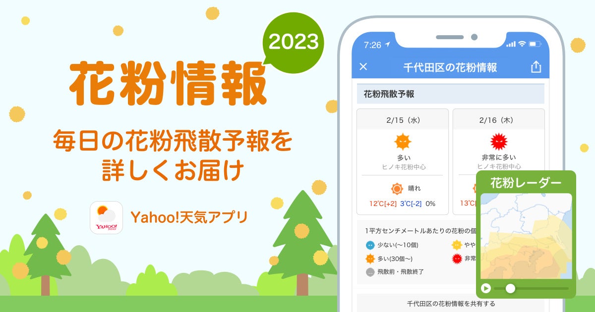 ヤフー株式会社(以下、Yahoo! JAPAN)が提供する、累計5,400万ダウンロードを突破した「Yahoo!天気」アプリ(iOS版、Andorid版)は本日、全国各地の花粉情報をまとめた「花粉情報2023」を公開しました。