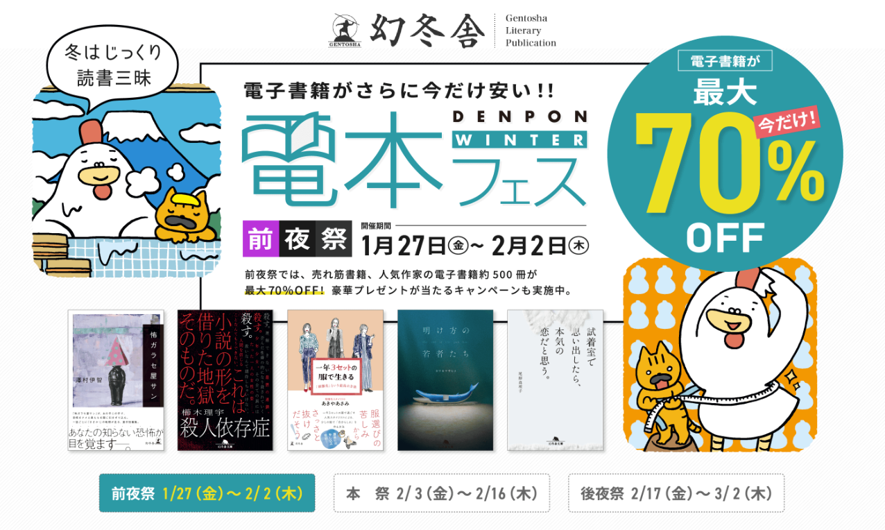 キャンペーン名:電本フェス ~幻冬舎の電子書籍 計4,700冊超が最大70%OFF~