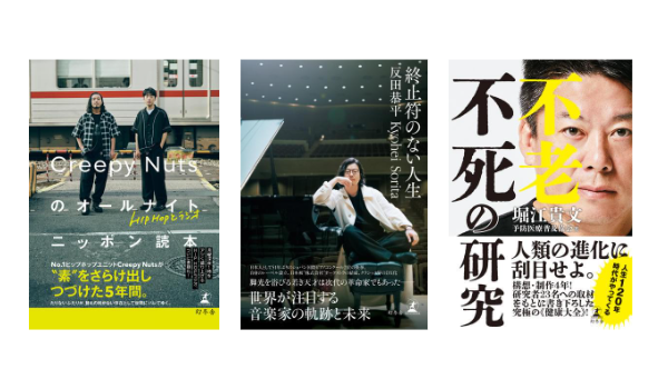 本キャンペーンでは、『HIPHOPとラジオ Creepy Nutsのオールナイトニッポン読本』(Creepy Nuts、 竹之内祐幸:著)や、『終止符のない人生』(反田恭平:著)、『不老不死の研究』(堀江貴文:著)などをはじめとした幻冬舎の電子書籍ほぼ全作品が対象です。5週間合わせて4,700冊を超えるタイトルが、最大70%OFFというお得な価格でご購入いただけます。