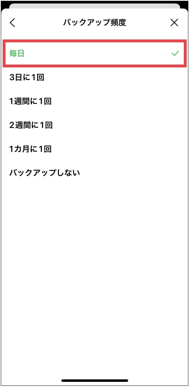 Step2:任意のバックアップ頻度を選択したら完了です。
