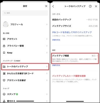 LINEのトーク履歴は、事前に設定した頻度で自動でバックアップすることも可能で、バックアップを都度作成する手間や、作成漏れの防止に役立ちます。下記は、iPhone版のLINEでの手順ですが、Android版でもほぼ同様の手順で設定できます。
