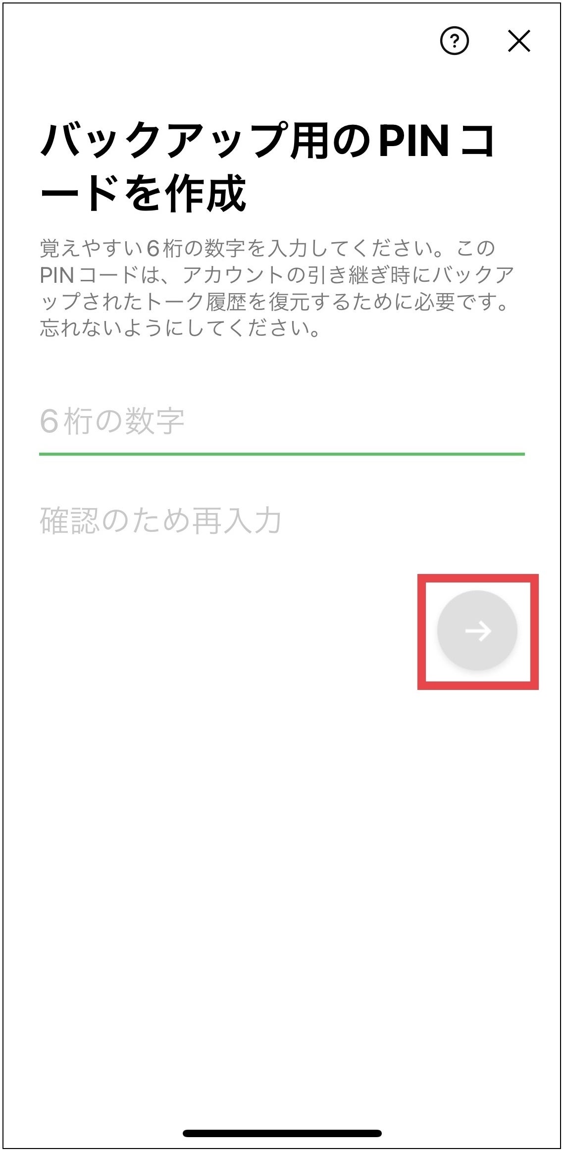 Step2:任意のPINコードを入力して、画面の指示に沿って操作すると、その時点のバックアップをすぐに作成できます。