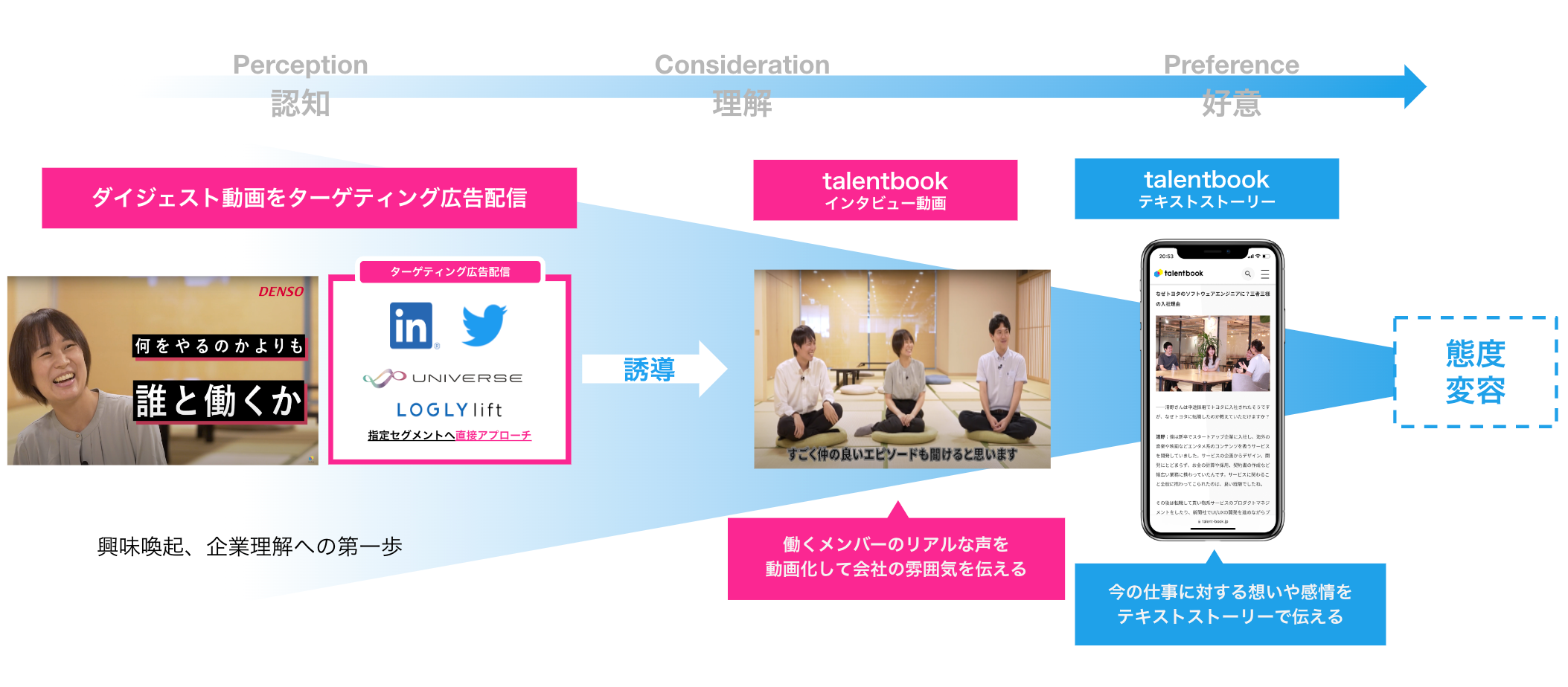 talentbookは、人事・採用のご担当者様とともに、情報発信の戦略設計から、企画、制作、発信、活用、検証のサイクルを効率的・効果的にワンストップでご支援しています。