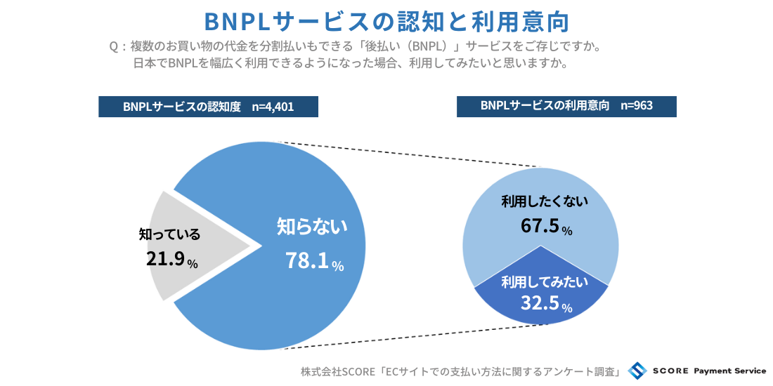- 分割型の後払い(BNPL)は78%が知らない。知っていても、利用したい消費者は3割強に留まる