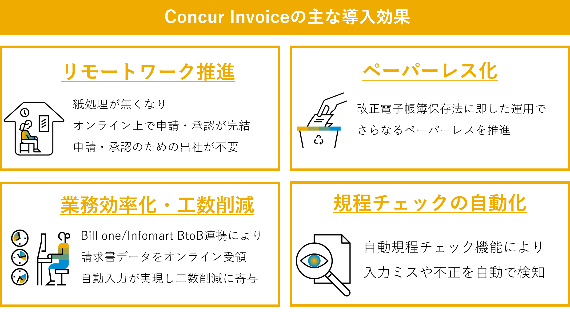 マルハニチロは、既にコンカーが提供する経費精算・管理クラウド「Concur Expense」、出張管理クラウド「Concur Travel」の2サービスを利用しており、業務効率化、ペーパレス対応の効果が大きく表れている基盤を有効活用したConcur Invoiceの採用に至りました。