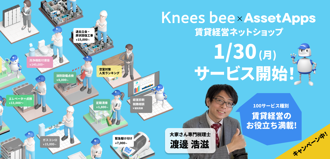 これにより、アセットコミュニケーションズの運営するサービス「AssetApps-BMクラウド」(https://assetapps.net)をご利用の家主/不動産オーナーは、Knees beeの提供する税務サービス・コンサルティングサービスを利用できるようになります。