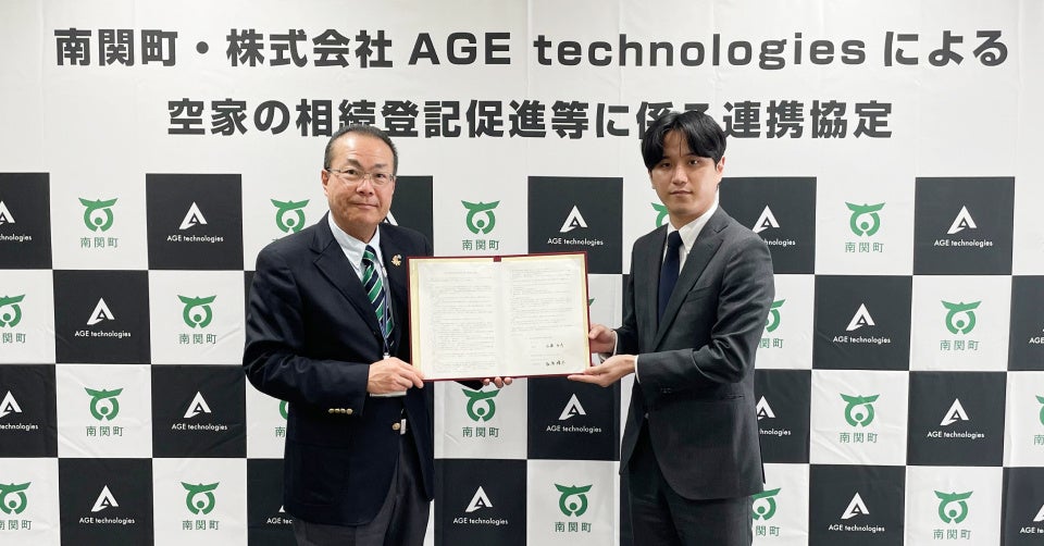 「民間企業との積極的な連携を通じ、空き家対策を強化される南関町さまと、空き家の相続登記促進等に係る連携協定を締結できたことを光栄に思います。弊社が展開する、煩雑な各種相続手続きの課題を解決に向けたWebプラットフォーム、我々の知見やデータをフル活用することで、南関町における課題解決に寄与できるよう尽力して参ります」(AGE technologies代表取締役CEO 塩原優太)