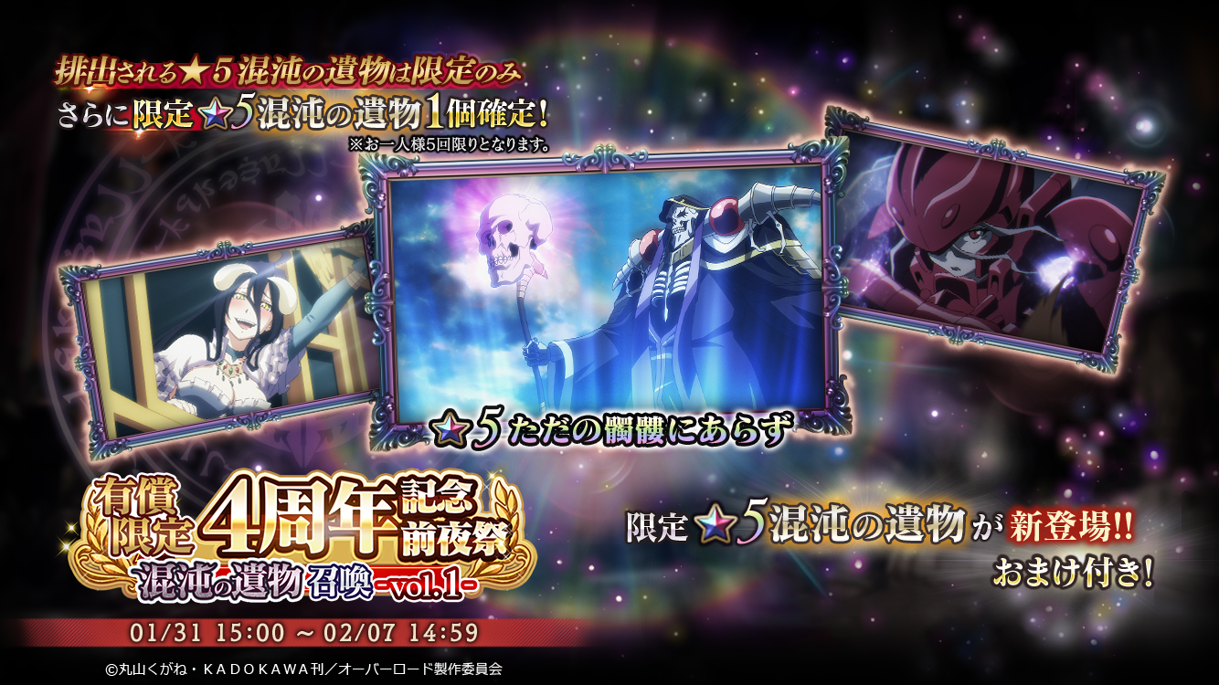 ■イベント召喚『有償限定4周年記念前夜祭混沌の遺物召喚-vol.1-』開催!