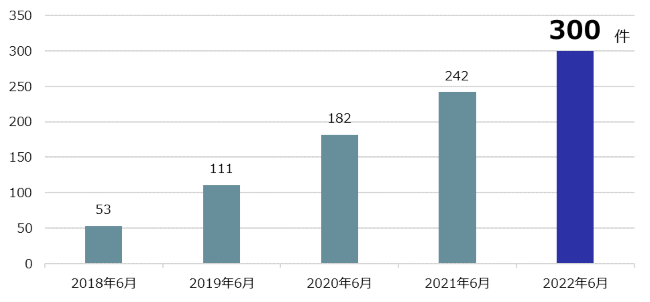 【JTOWER 4G屋内インフラシェアリング・ソリューション 累計導入済物件数推移(国内)】