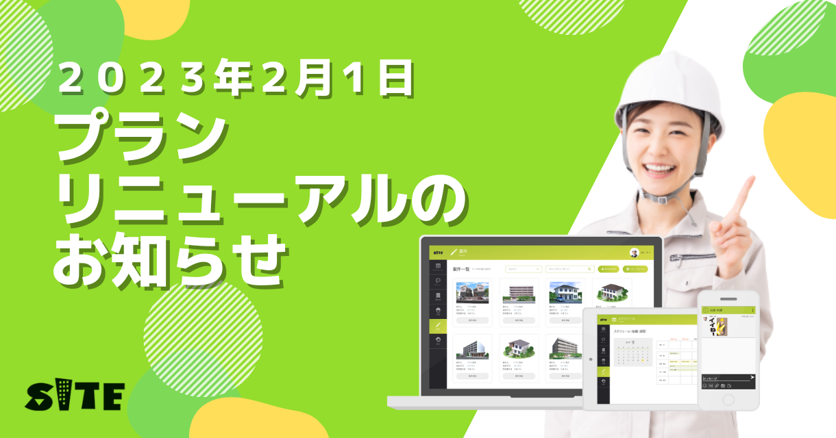 これらのご要望にお応えし、「SITE」を案件管理、チャット、スケジュールの基本機能に集約したシンプルなプランに加え、強化したい課題によって機能をパッケージ化し、新たに4つの『基本パック』『現場強化パック』『組織強化パック』『フル強化パック』として、提供することといたしました。もちろん、ニーズや事業者の変化に合わせて、機能のパッケージングを自由にカスタマイズできるようになっています。