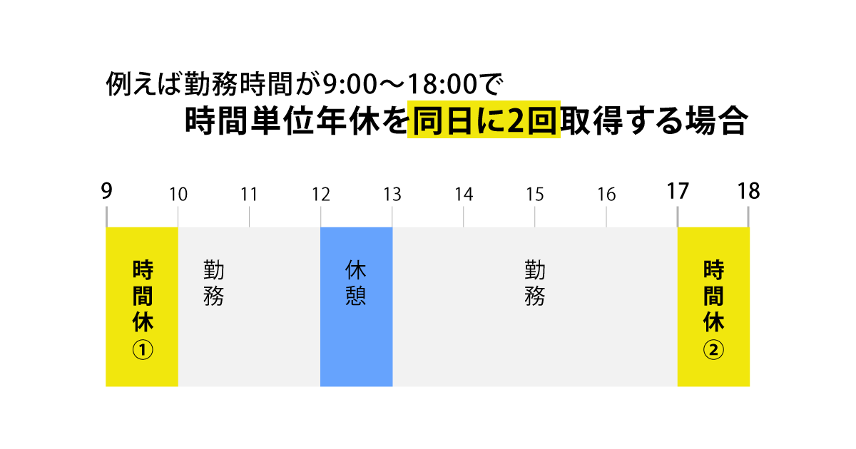 時間単位年休取得機能のアップデートにより、同日に2回まで時間単位年休(有給休暇/振替休日/代休/特別休暇)の申請が可能になりました。このことで、育児や介護を⾏う従業員が、看護休暇や介護休暇を1日の中で柔軟に取得することができます。