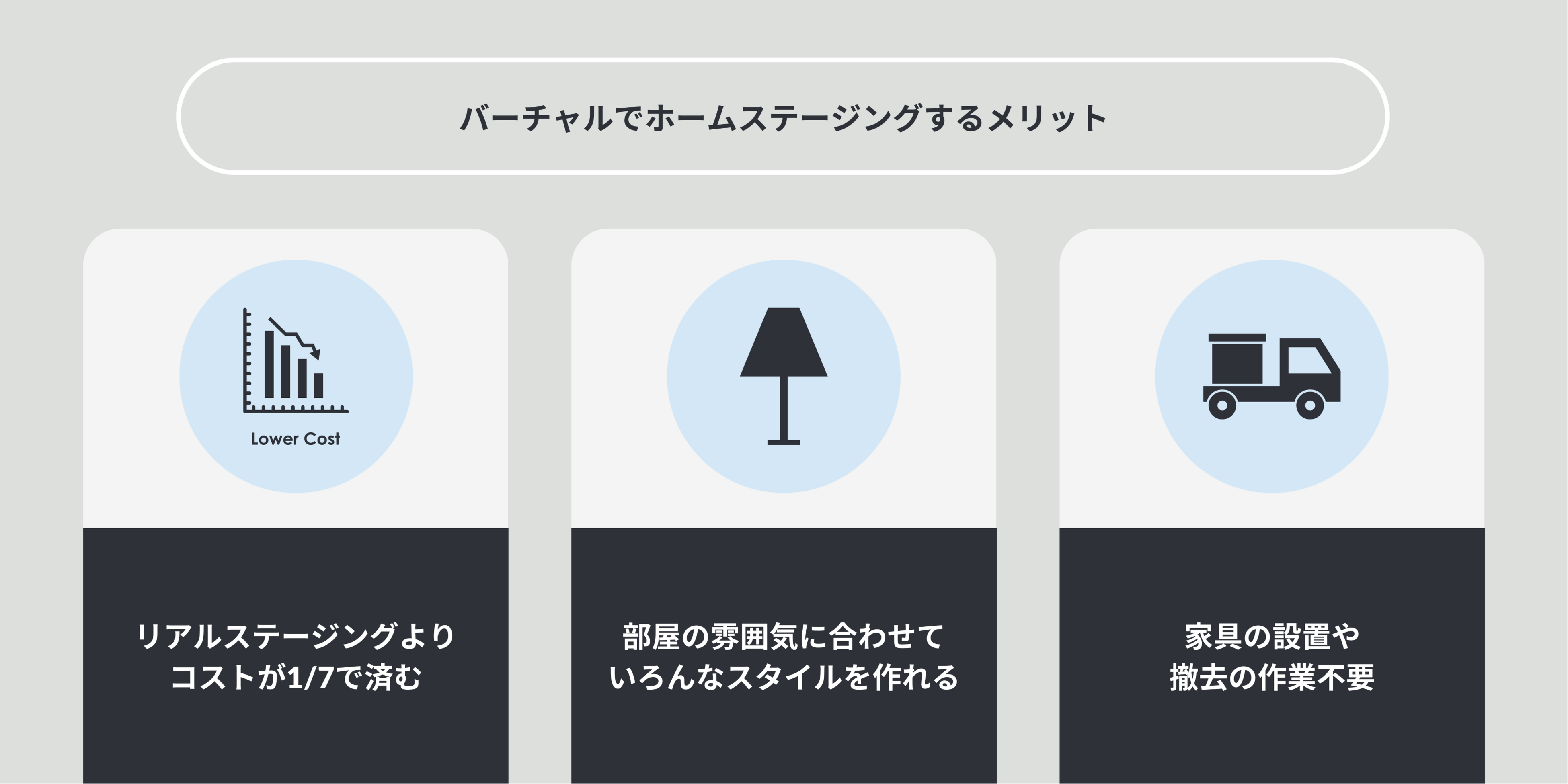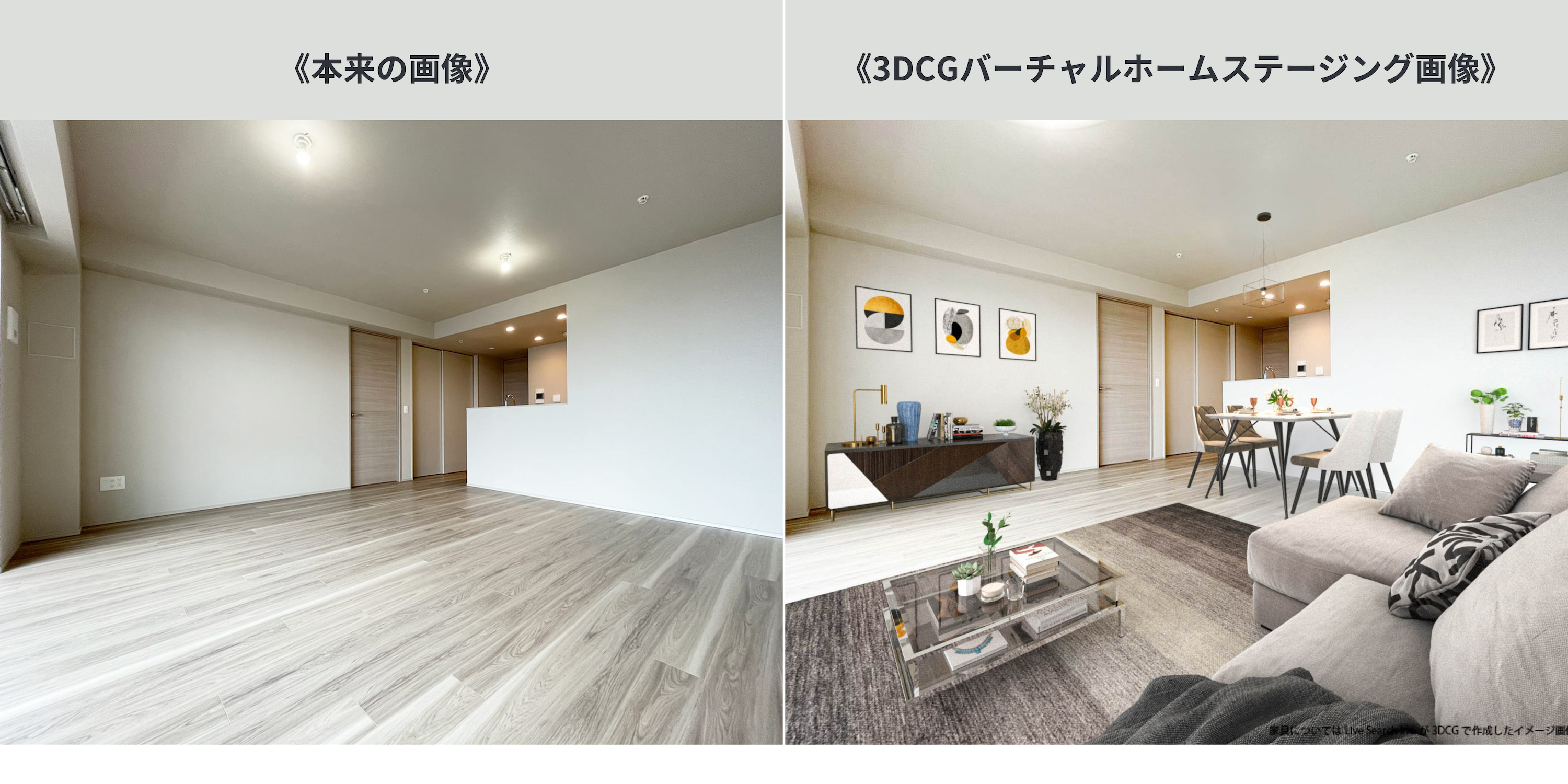 2020年4月からスタートしたリブ・サーチの3DCGバーチャルホームステージングサービスでは、部屋の画像上にCG加工で3D家具や照明、観葉植物などを装飾することで、ホームステージングしたかのような演出が可能になります。物件の魅力を高めつつ、リアルホームステージングよりも低コストでプロモーションが可能になることから、近年では不動産業界でも浸透しつつあるサービスです。しかしながら、賃貸分野においては物件の家賃帯によって投資収益率が見込めないケースもあり、売買物件や高額賃貸物件等での利用に留まっている状況が見受けられます。リブ・サーチのお客様は、高額〜リーズナブルな賃貸物件まで幅広く取り扱っているという不動産会社様が多くいらっしゃることもあり、賃貸シーンでも「もっと利用しやすいサービスであるべき」と考え、大幅な値下げを行うことといたしました。