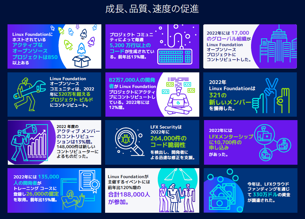 - 日本語版 : https://www.linuxfoundation.jp/publications/2023/01/linux-foundation-annual-report-2022-jp/
