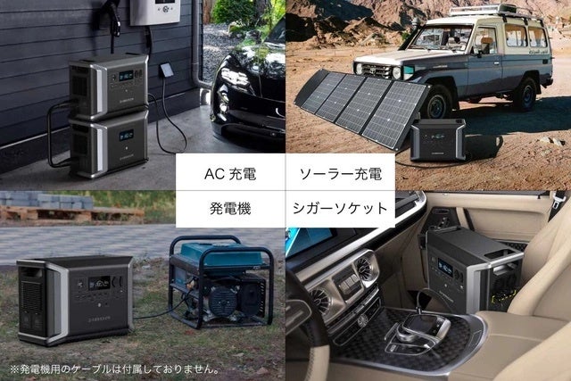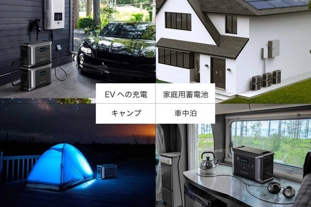 さらに専用のエクストラバッテリーを最大2台追加することで「8,330Wh」の大容量の確保、加えてオプションのソーラーパネルを使用することで電源のない場所でも電力の確保など、「安全性」だけではなく、アウトドアはもちろん自宅の予備電源や万一の備えなど様々なシチュエーションで活躍する性能も兼ね備えた、まさに次世代のポータブル電源が誕生いたしました。