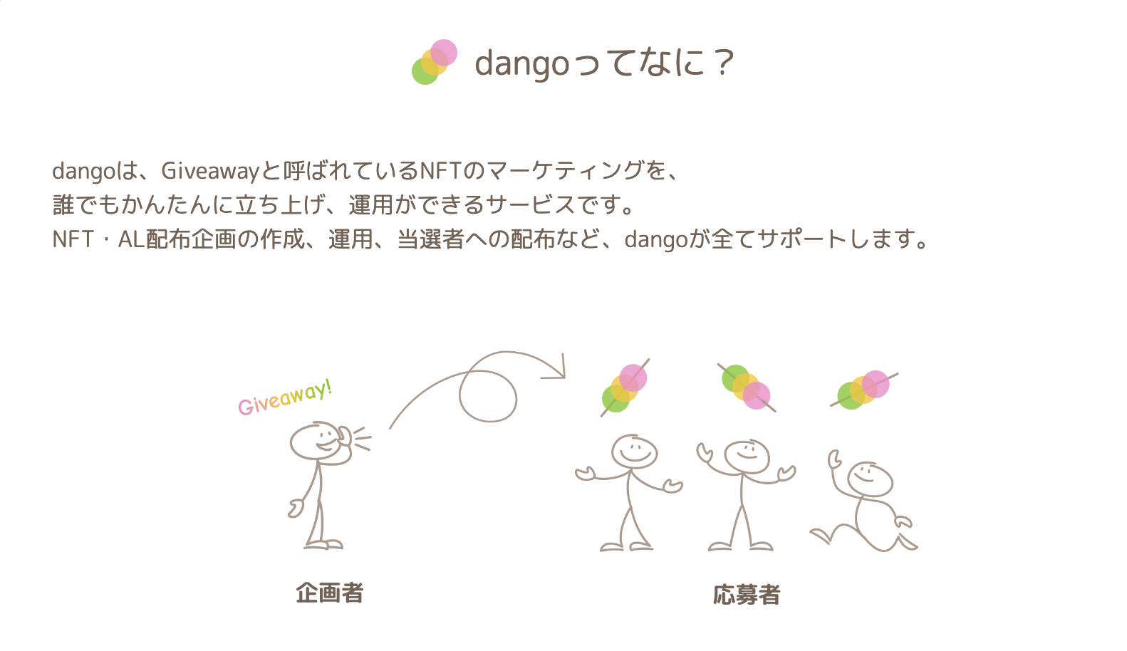NFTプロジェクトの認知拡大を目指したい事業者やクリエイターは、dangoを使用することで、Giveaway企画をよりスムーズかつ安全に実施し、管理できます。