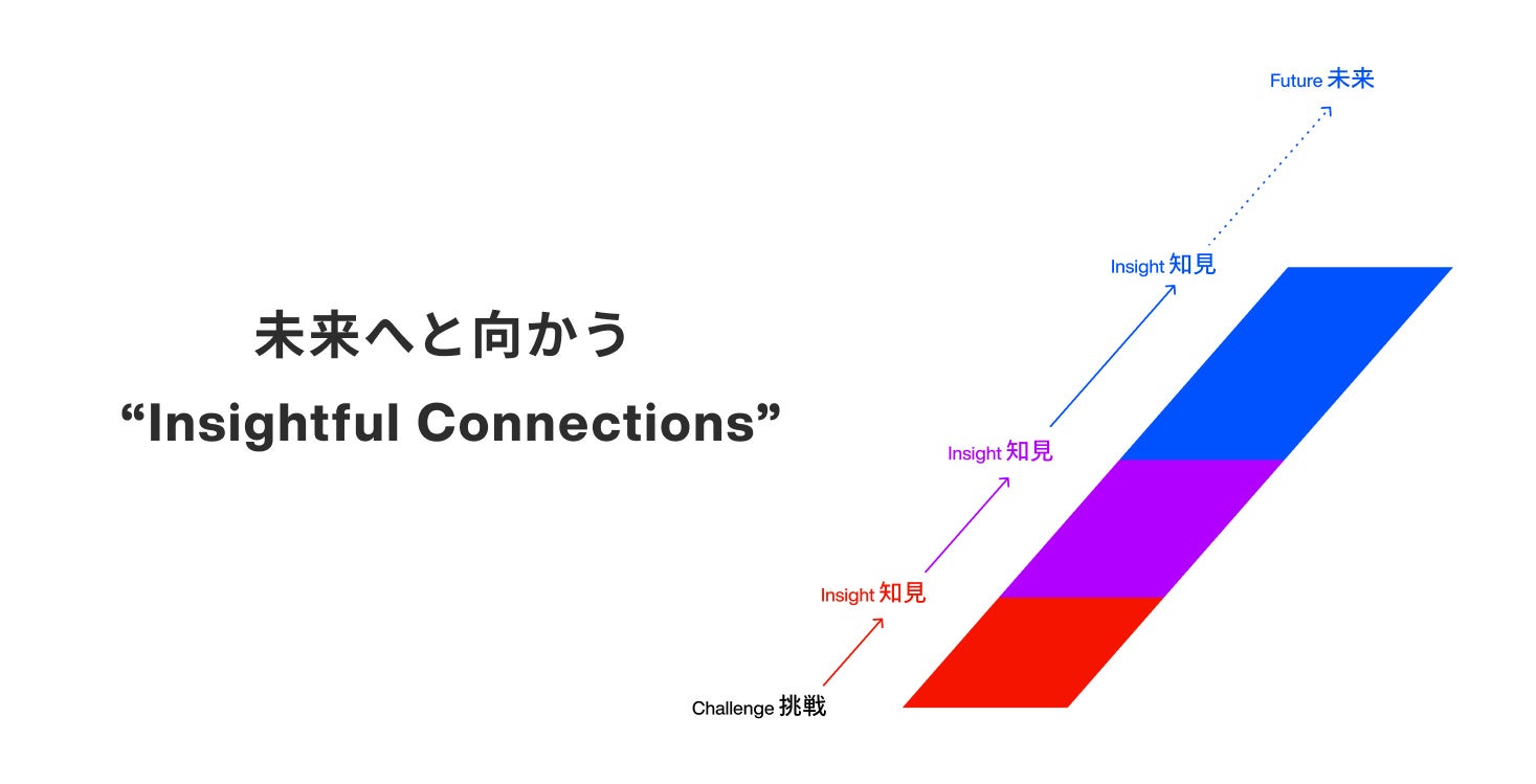 新たなシンボルでは、”Insight(知見)”が連なり、一本の“connection(つながり)“となって未来へ向かっていく様子をシンプルかつ象徴的に表現しています。