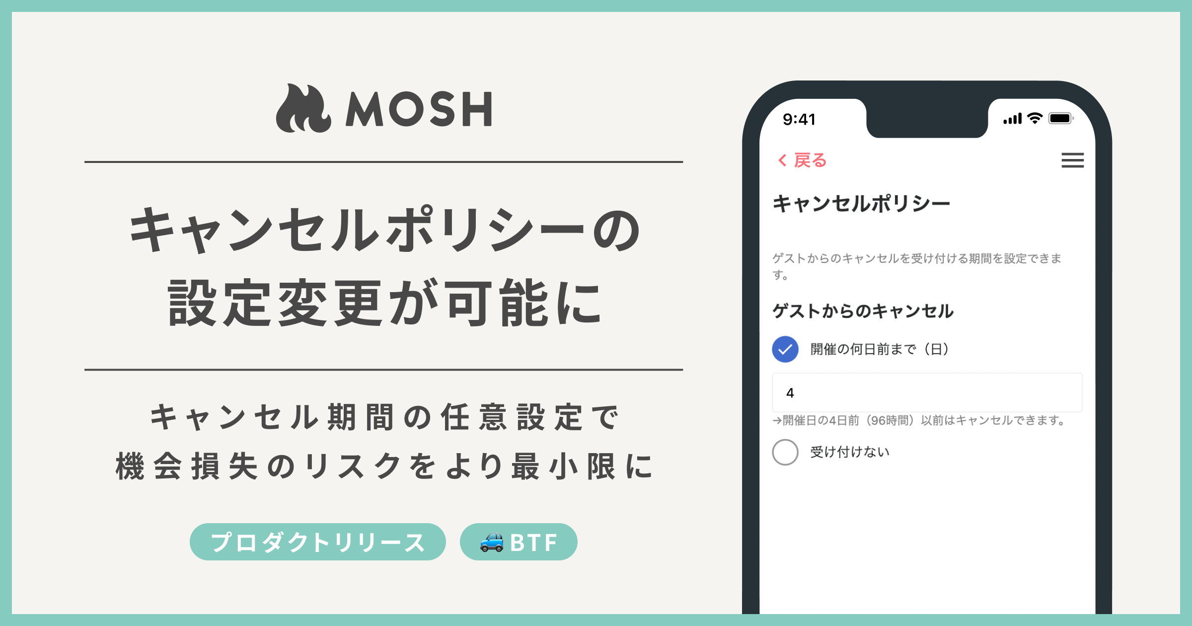 そこでこの度、無断キャンセルや直前のキャンセルによる損失を避けられる「キャンセルポリシーの任意設定機能」をリリースいたしました。