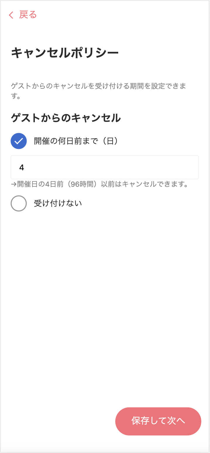 サービスごとにゲストからのキャンセルを受付可能の期間を自由に設定できます。