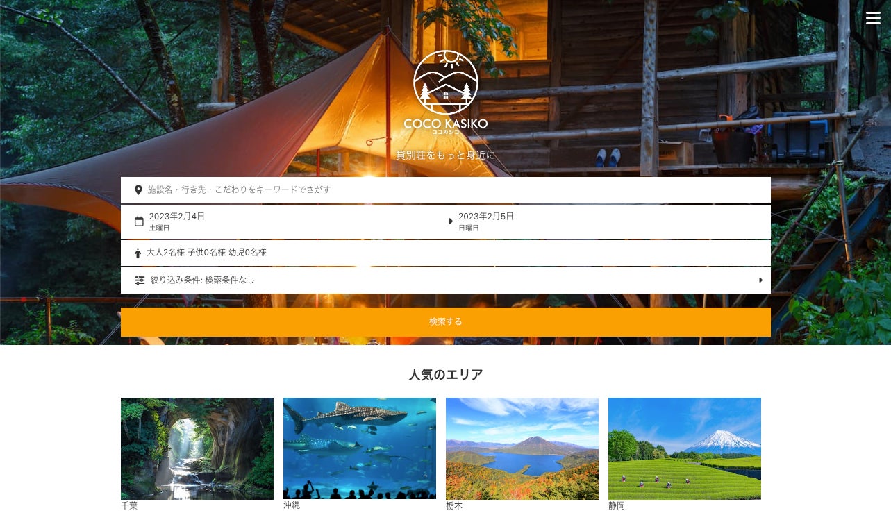ココカシコでは貸別荘・コテージを専門とした紹介を行い「新しい思い出」へのコンシェルジュになることを目指します。