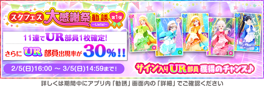 ・Liella!特待生勧誘:2/9 23:59