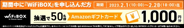 2023年2月1日(水)10:00~2023年2月28日(火)18:00までに「WiFiBOX」をお申し込みの方全て