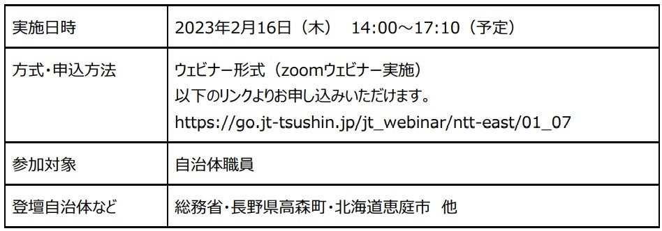 自治体DXの事例の展開を中心とした、自治体職員限定ウェビナーを、自治体通信を発行するイシン株式会社と以下の通り共同で開催いたします。ぜひご覧ください。