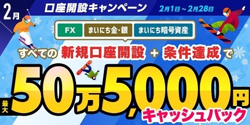 2月に新規でFX口座を開設されたお客様に対して、開設の翌月末までに以下の条件を達成で最大505,000円をプレゼントいたします。