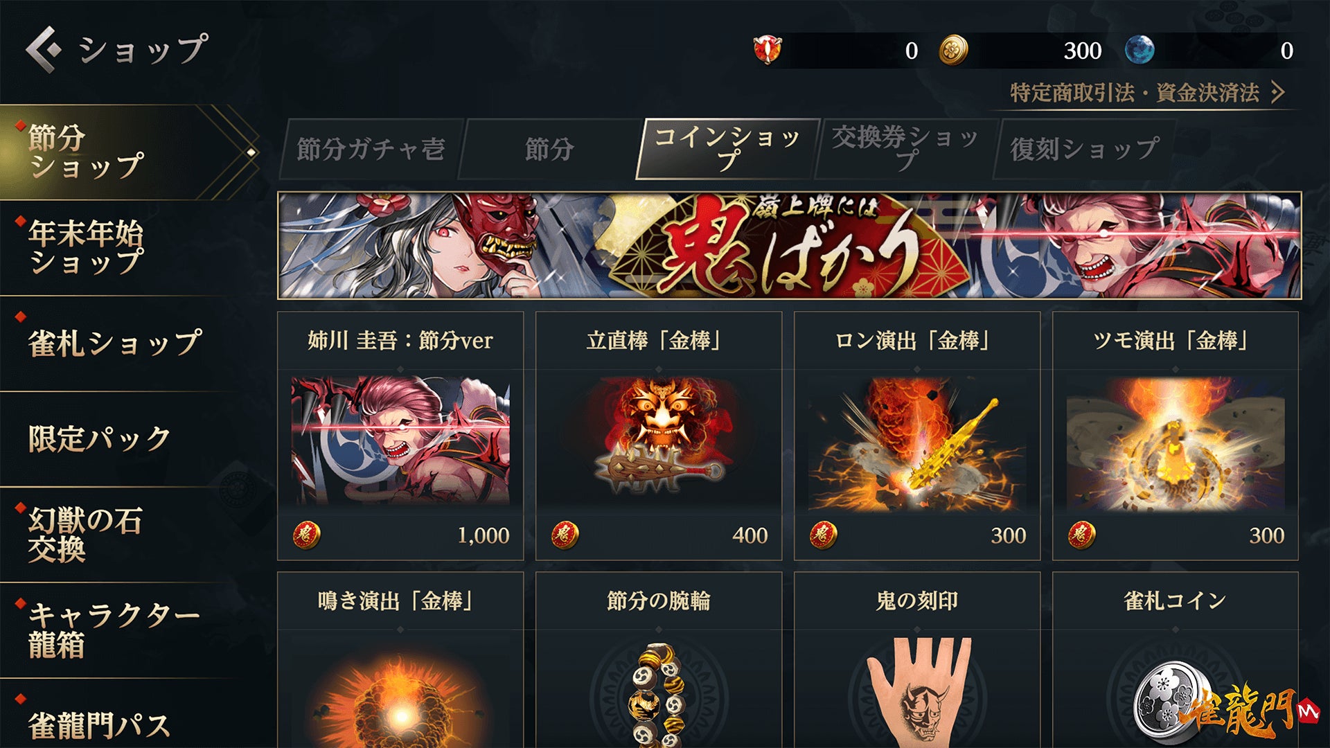 「節分のコイン」で交換できる限定アイテムはショップでチェック!