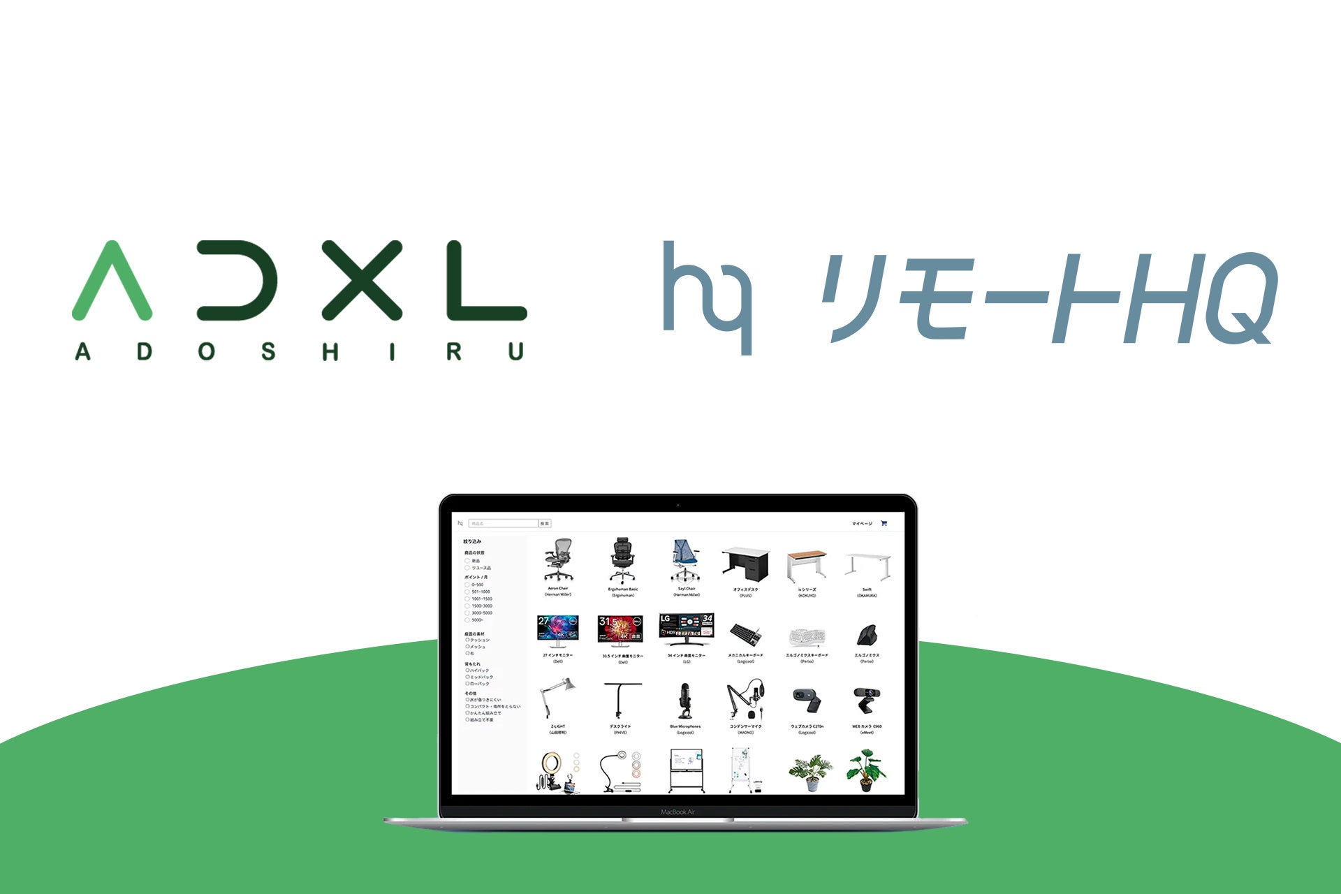 「リモートHQ」は、リモートワークを導入する企業が、社員一人ひとりにとって最適なリモートワーク環境を整備できる、これまでにないサービスです。パソコンデスクやチェア、モニター、ウェブカメラといったリモートワークに必須の備品類から、在宅勤務における心身の健康をサポートするフィットネス機器やリフレッシュ家電に至るまで、計1,000点超のアイテムから、各企業が設定したポイント数(=社員一人あたり月額予算)に応じて各社員が最適なものを自律的に選択できます。また、状況にあわせて返却、追加、交換を行うことで(レンタル形式)、常に最適なリモートワーク環境を構築することが可能になります。加えて、在宅勤務手当をリモートHQに切り替えることで、社員の税金負担と会社負担コストの両方を削減できます。
