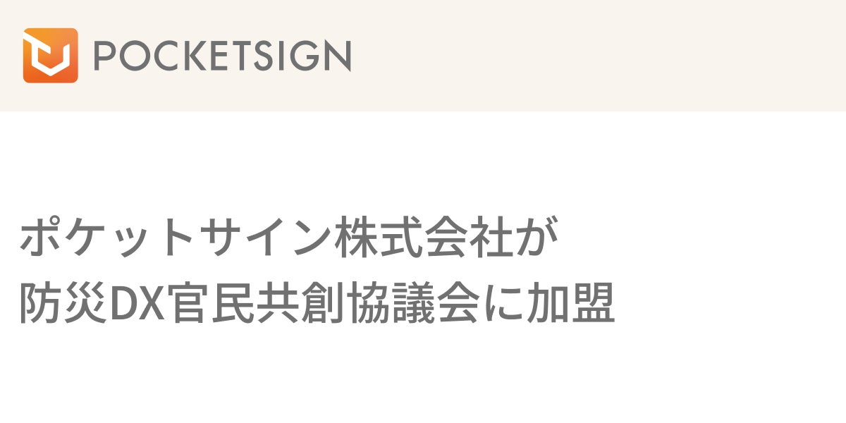 ポケットサイン株式会社(本社:東京都千代田区、代表取締役:塩谷明達、以下当社)は、防災DX官民共創協議会に加盟したことをお知らせいたします。
