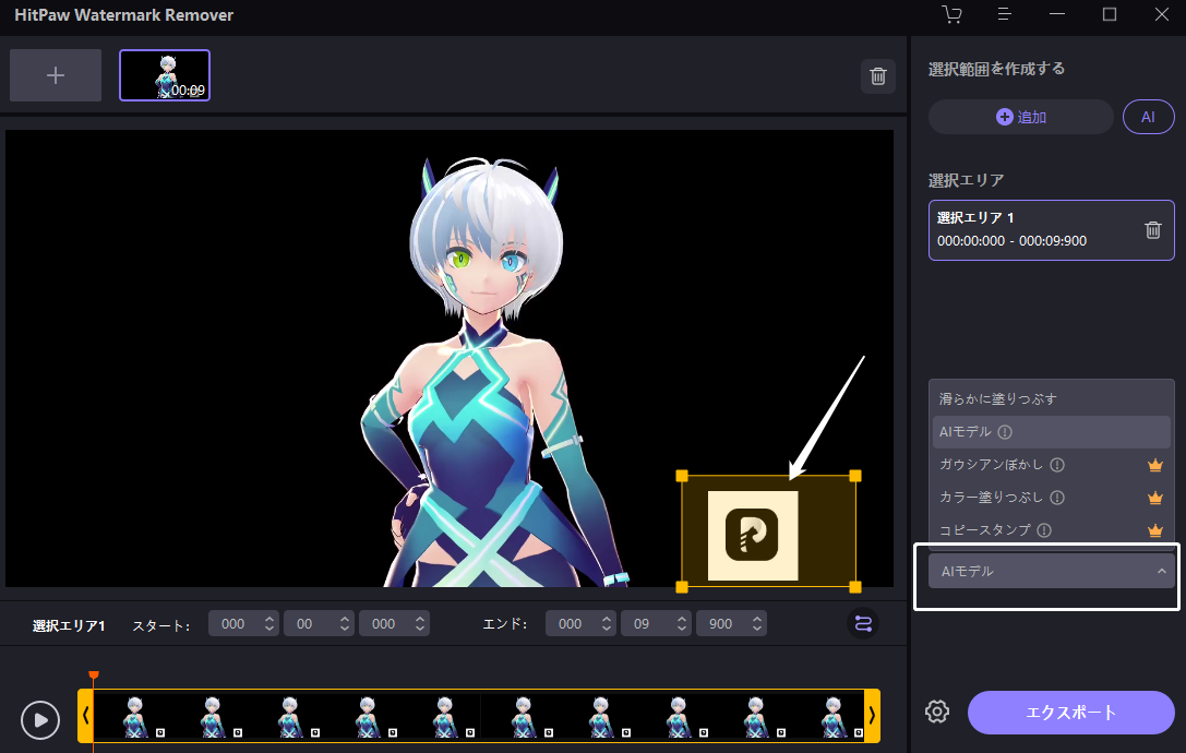 ステップ4:再生ボタンをクリックすれば、ロゴ消しが開始