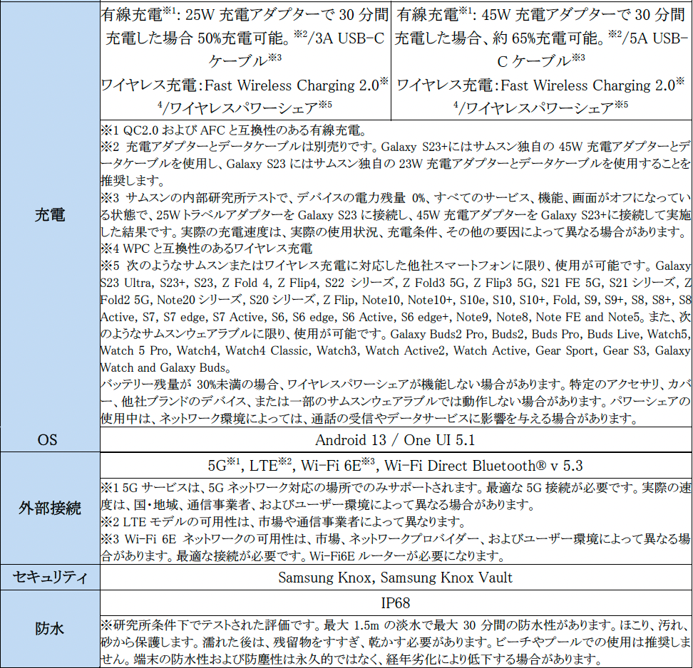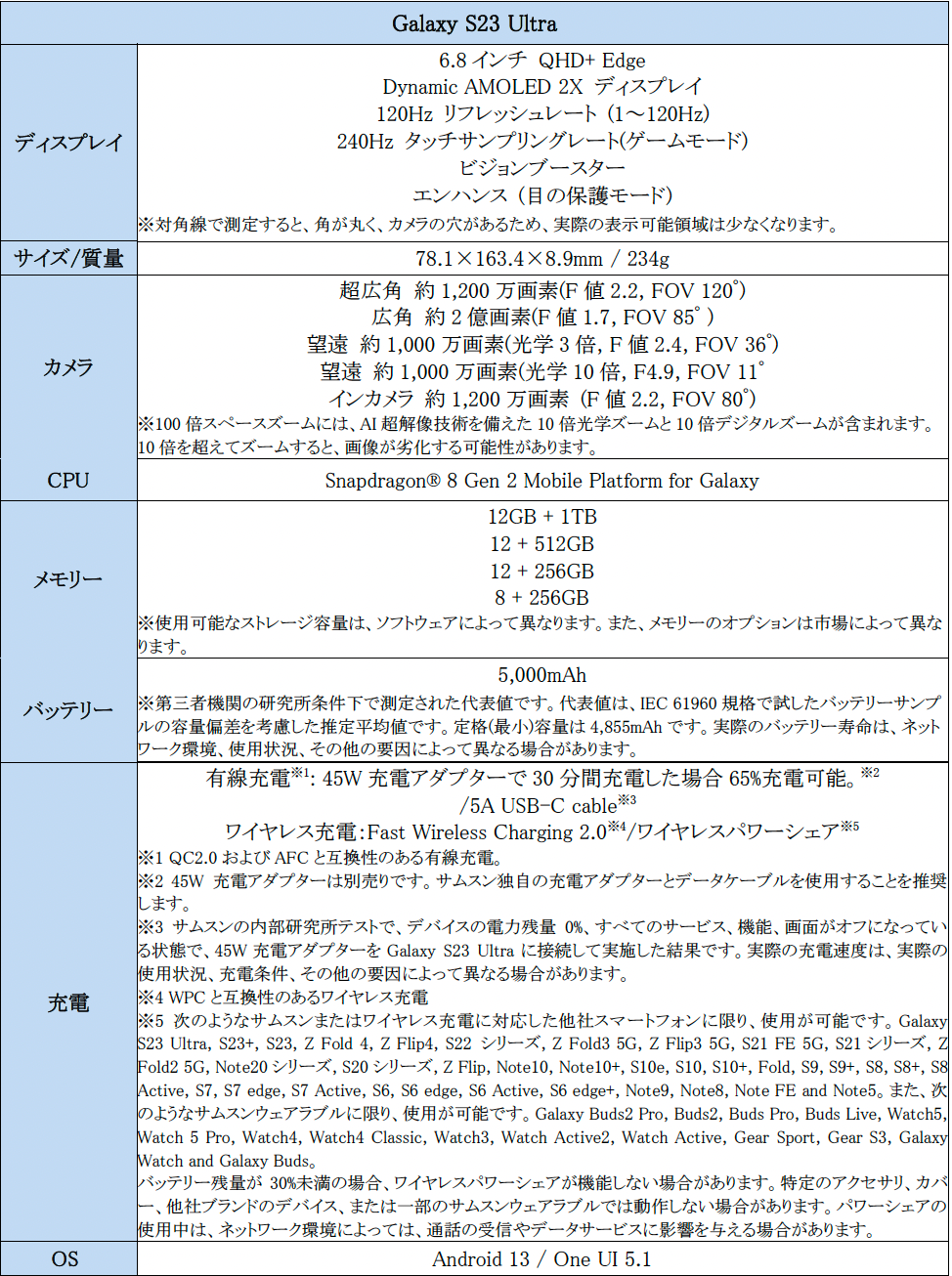 「Galaxy S23シリーズ」の特徴は以下の通りです。
