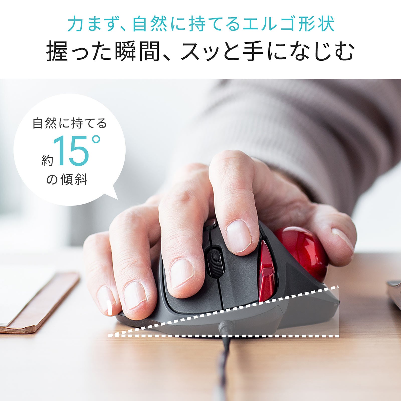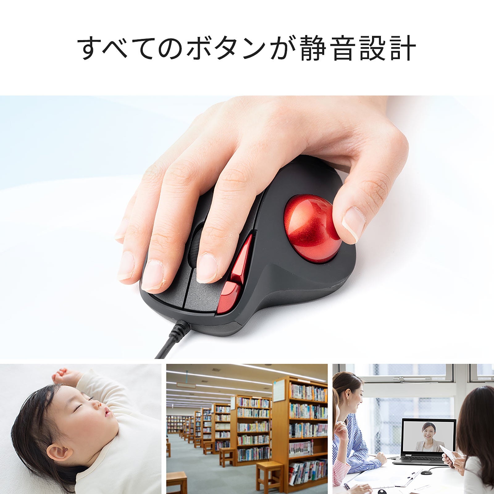 本製品は、親指でボールを転がしてパソコンのマウスカーソルを操作するトラックボールです。マウスを動かすためのスペースが不要なため、小さなデスクの上でも快適に操作できます。