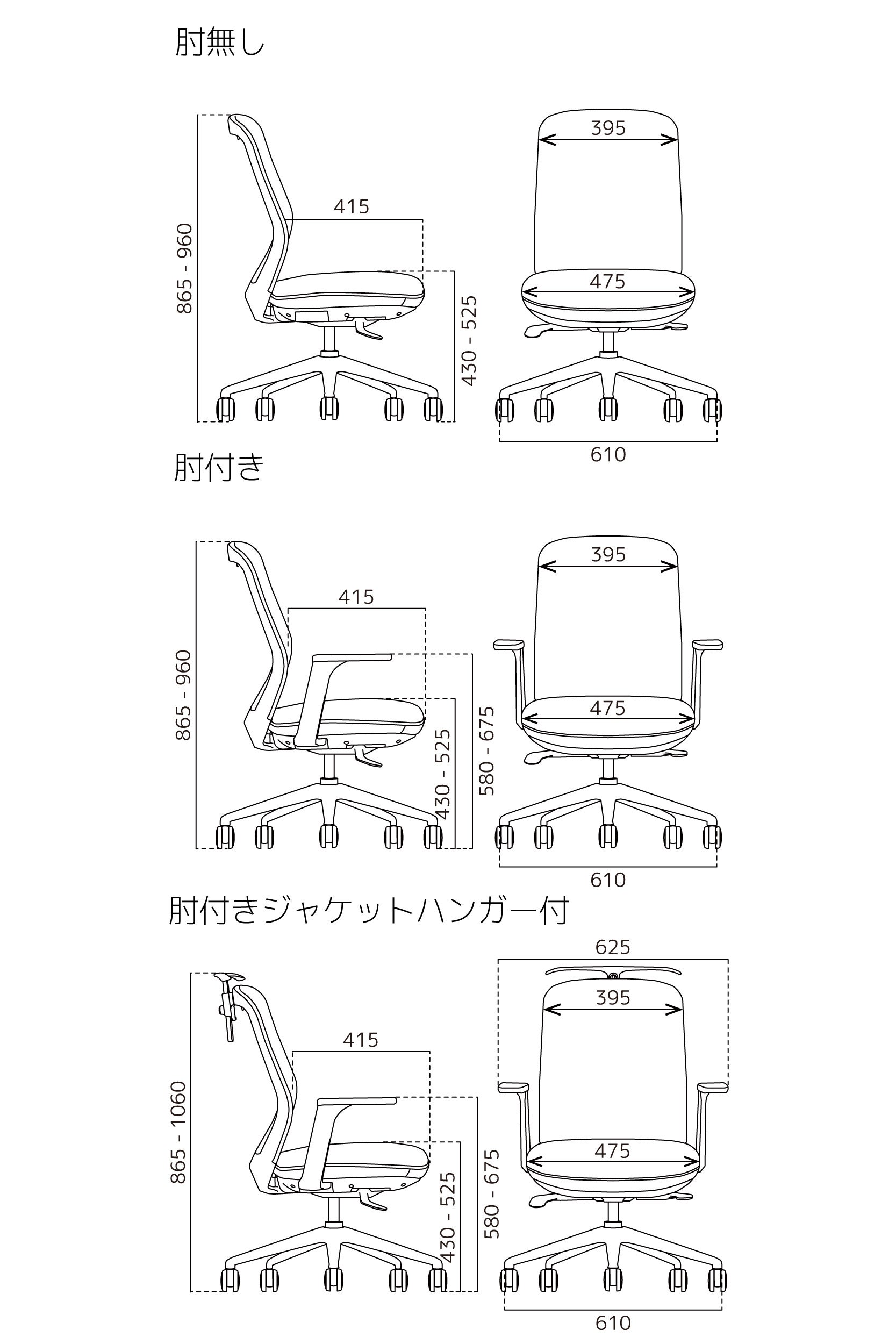 肘付・ハンガー付 / W625 × D610 × H865~1060mm
