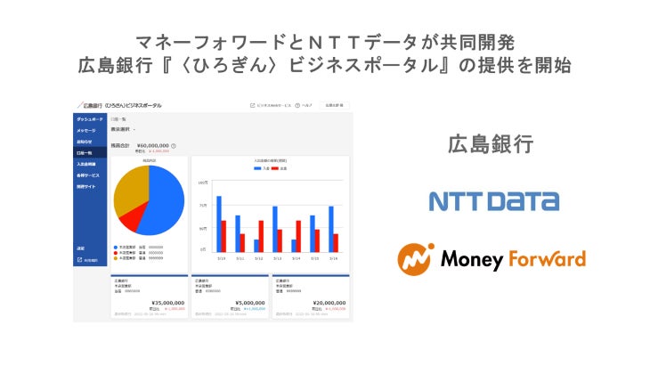 株式会社マネーフォワードは、株式会社広島銀行の法人・個人事業主のお客さま向けポータルサイト『〈ひろぎん〉ビジネスポータル』を、株式会社NTTデータと共同開発し、広島銀行を通じて明日より提供を開始します。