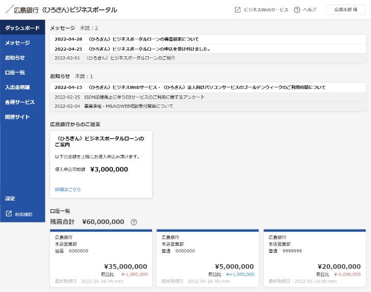この度、マネーフォワードとNTTデータが共同開発する「法人・個人事業主向けポータルサイト」を広島銀行へ導入し、広島銀行のお客さま向けに『〈ひろぎん〉ビジネスポータル』として明日より提供開始します。