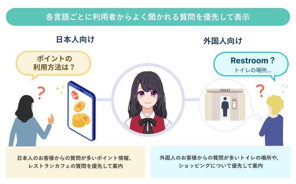 今回新たにAIさくらさんのアップデートによって、インバウンド需要に合わせて言語ごとに利用者からよく聞かれる内容を優先してさくらさんの初期画面で案内することも可能となりました。