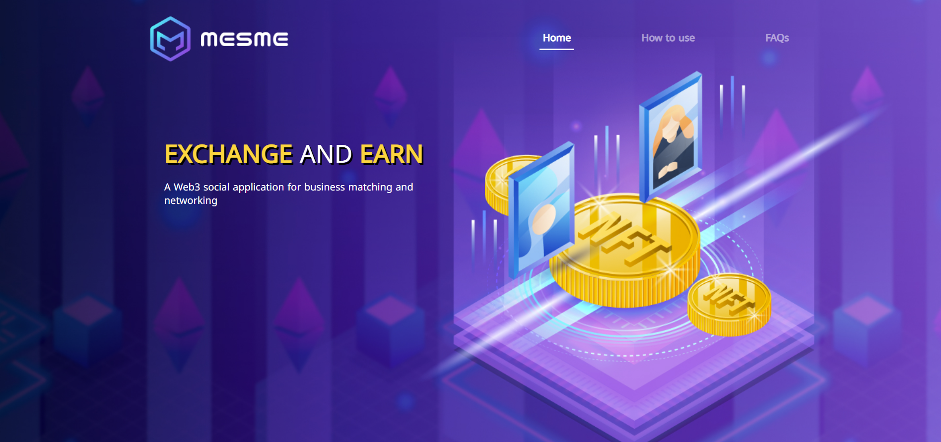 (http://mesme.vmo.group/) [Mesme- WEB3ソーシャルアプリケーション] Mesme- WEB3ソーシャルアプリケーションMesmeは、ビジネスマッチングとネットワーキングのためのWeb3ソーシャルアプリケーションです。NFTブロックチェーン技術を利用し、名刺作成、所有権の向上、情報セキュリティの確保を最大限に実現します。簡単に管理ができ、誰でも安心して使えます。