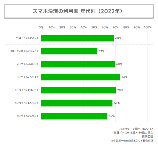 ■「スマホ決済」の利用率は30代、40代で7割超という結果に