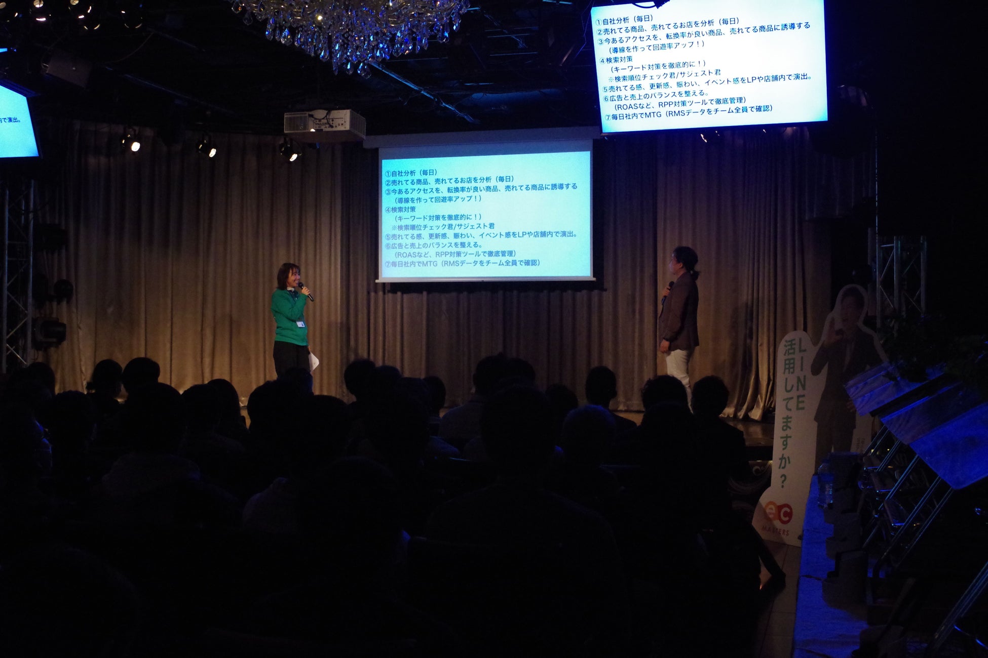 ECマスターズクラブの会員様5名にご登壇いただき、楽天市場やYahoo!ショッピングで実際に売上が伸びたLINEや広告の活用方法やブランディングなど、トークセッションが繰り広げられました。