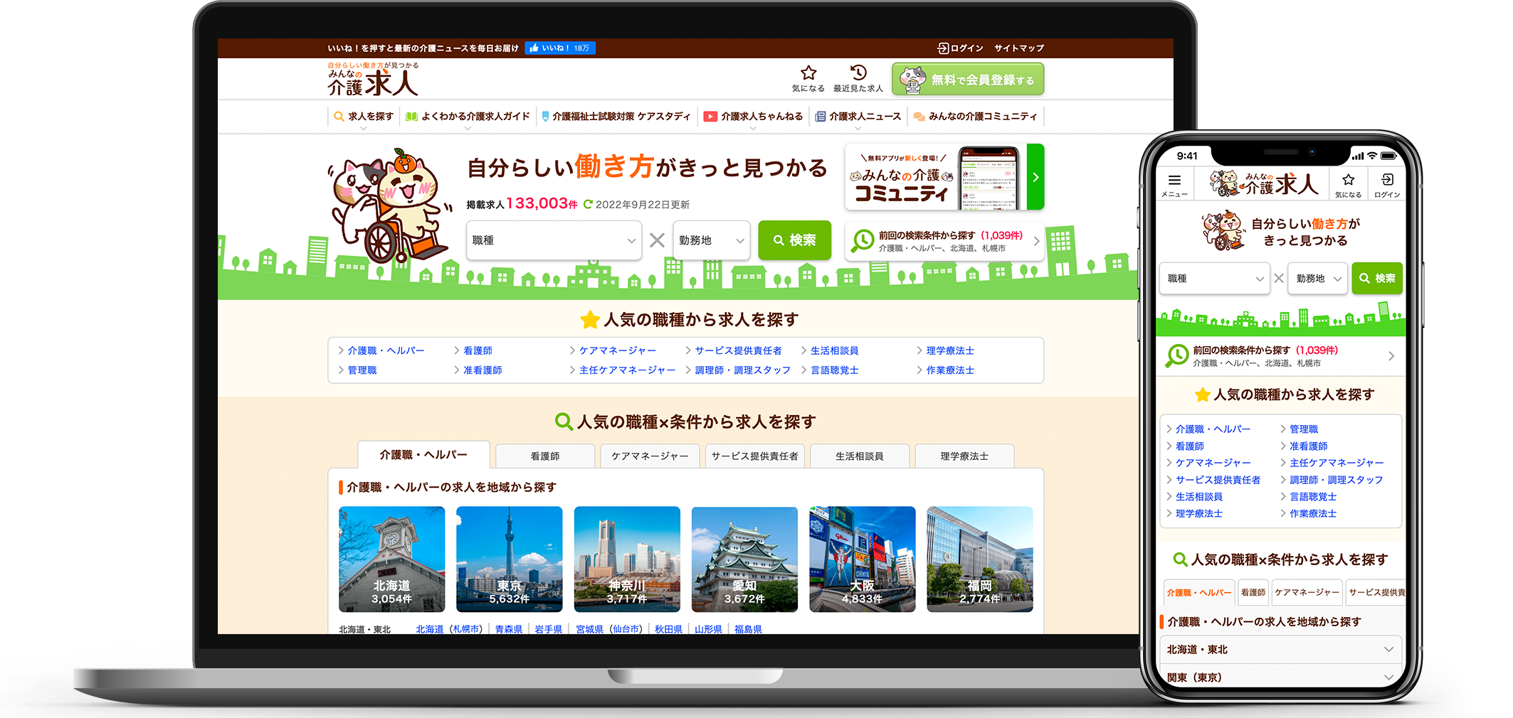 介護の⼈材採⽤メディア「みんなの介護求⼈」