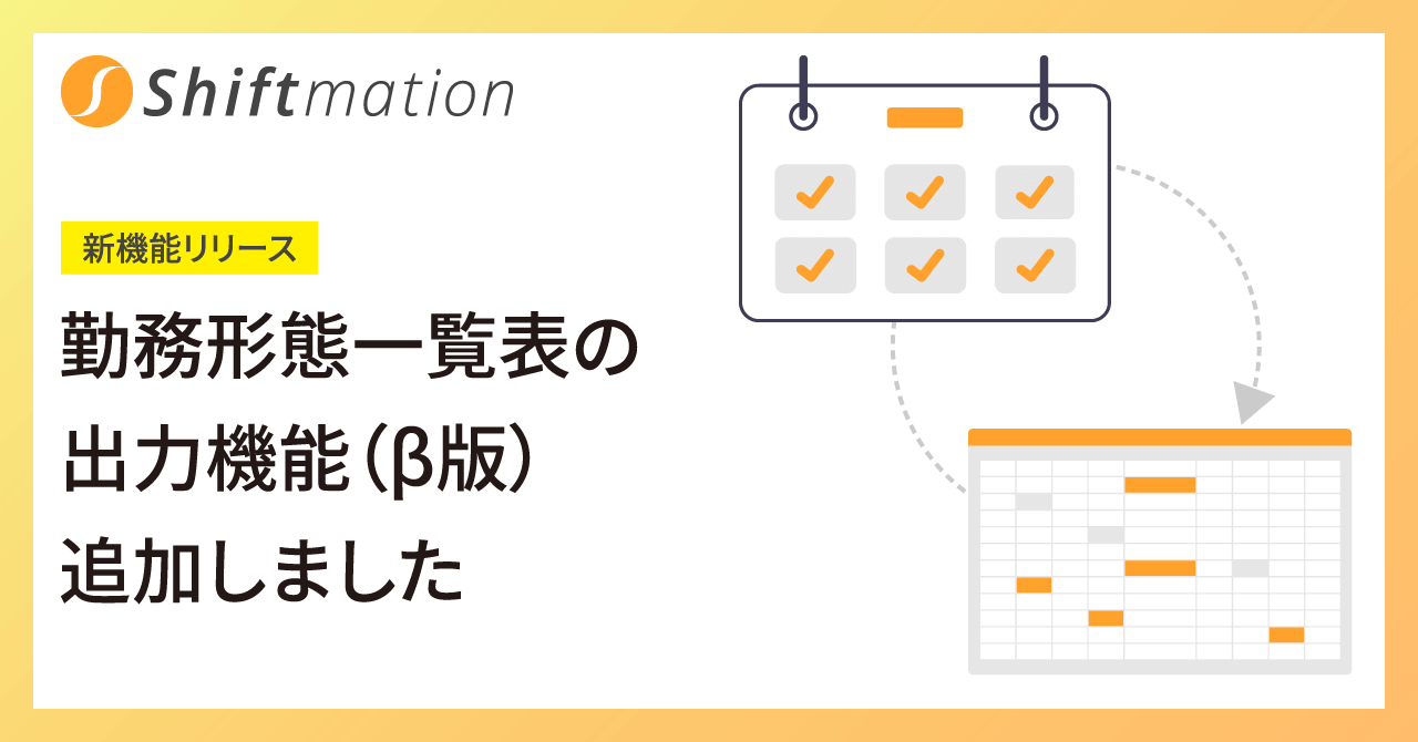 このたびのアップデートで、自動作成したシフトをもとに、勤務形態一覧表をExcel形式で出力する機能をリリースしました。