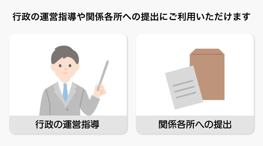 行政の運営指導の際や、関係各所への提出の際などにご利用いただけます。