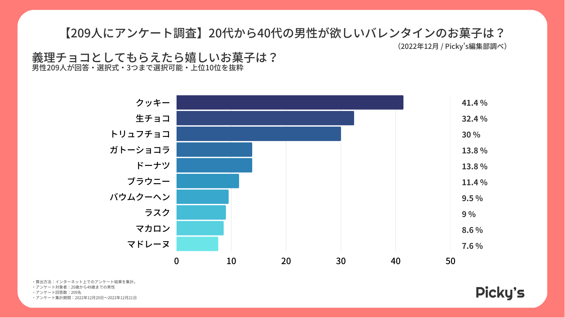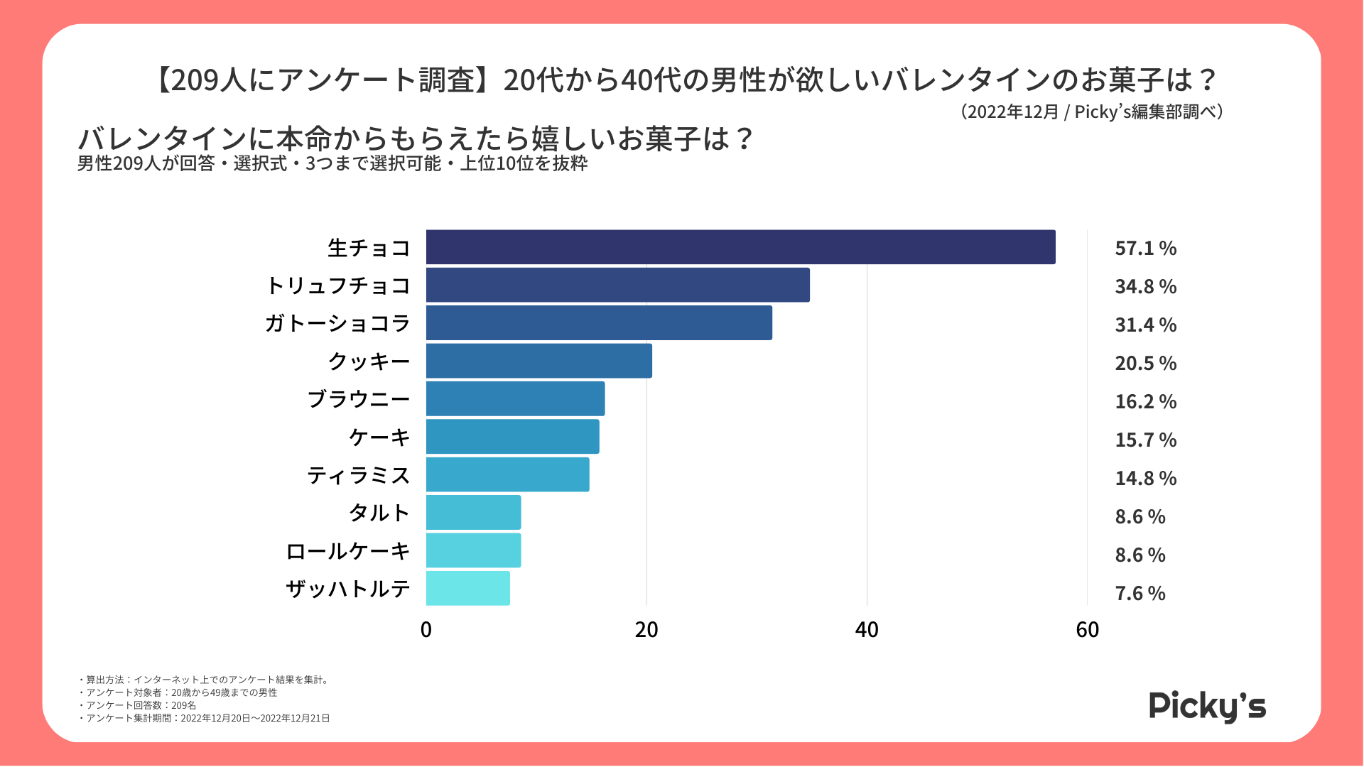 このたびPicky’s(https://rentry.jp/note/)では、バレンタインデーにらったら嬉しいお菓子やギフトについてインターネット上でアンケート調査を行い、ランキングを作成いたしましたので発表いたします。