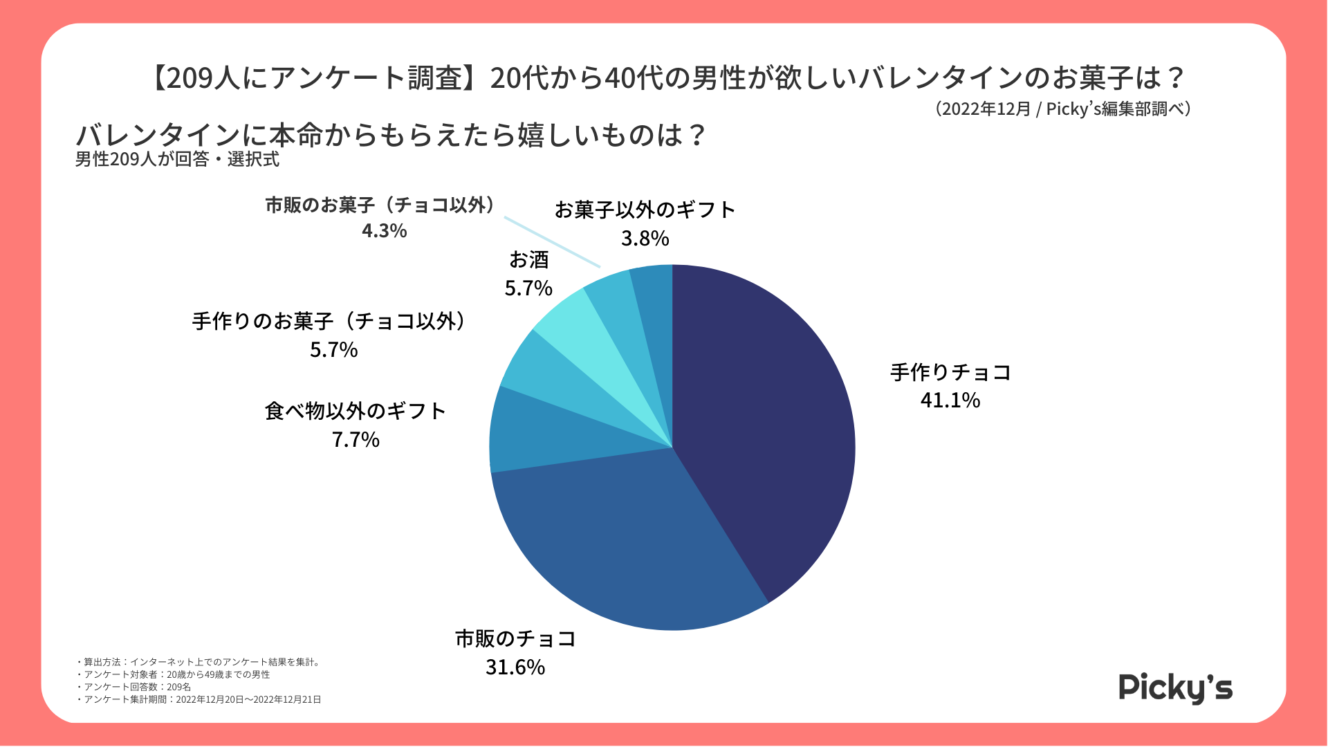 関連記事:【男性209人に聞いた】バレンタインチョコ・お菓子ランキング24選|チョコ以外のおすすめも
