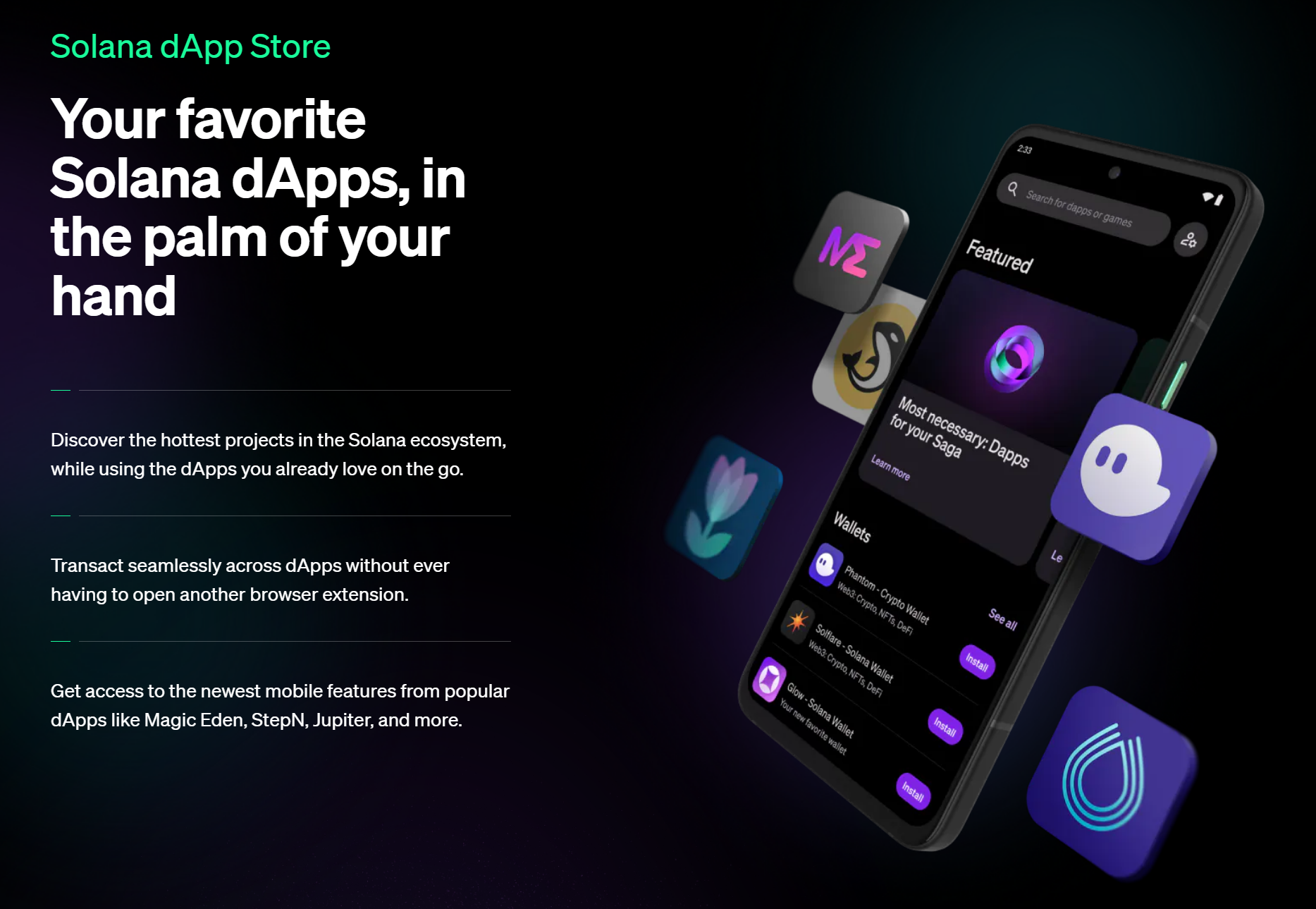 Solana dApp Store は iPhone においての App Store や Android においての Play Store のような dApp プラットフォームで、まずは Saga Phone 上で利用可能になります。