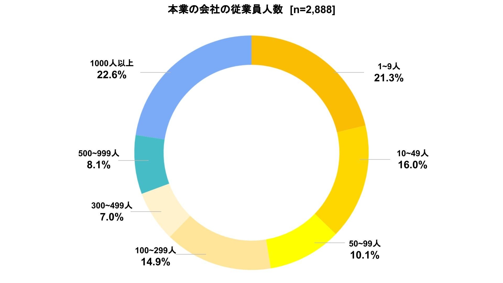 ・本業の会社の従業員数が1,000人以上と回答している人は22.6%おり、大企業でも副業促進の流れが進んでいることが窺える。